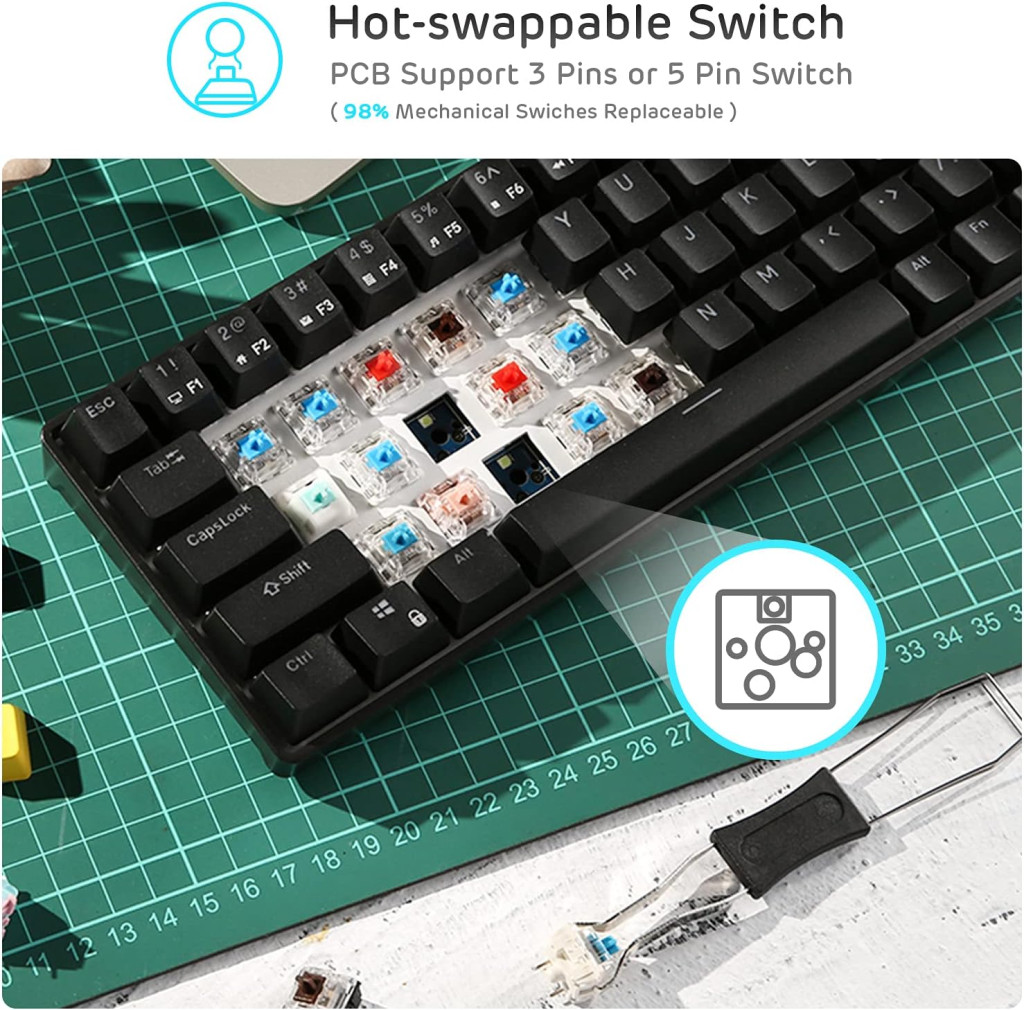 Cserélje ki a 3 vagy 5 tüskés kapcsolókat forrasztás nélkül. Teljesen testreszabható billentyűzet az Ön egyedi stílusához.
