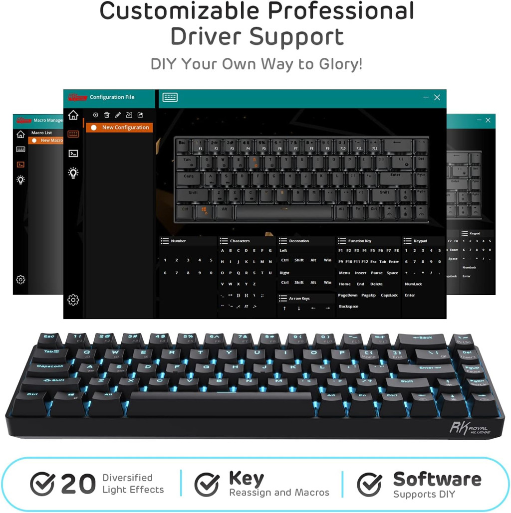 - DIY Szoftver: Professzionális illesztőprogram a billentyűkombinációk, háttérvilágítás és funkciók testreszabásához