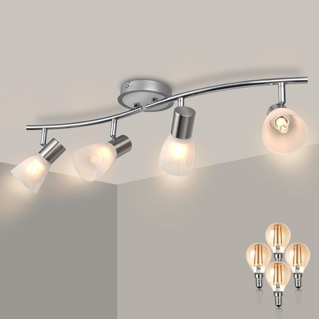 Unikcst stropna svjetiljka s 4 žarulje E14, rotirajuće reflektorsko svjetlo, topla bijela 3000K