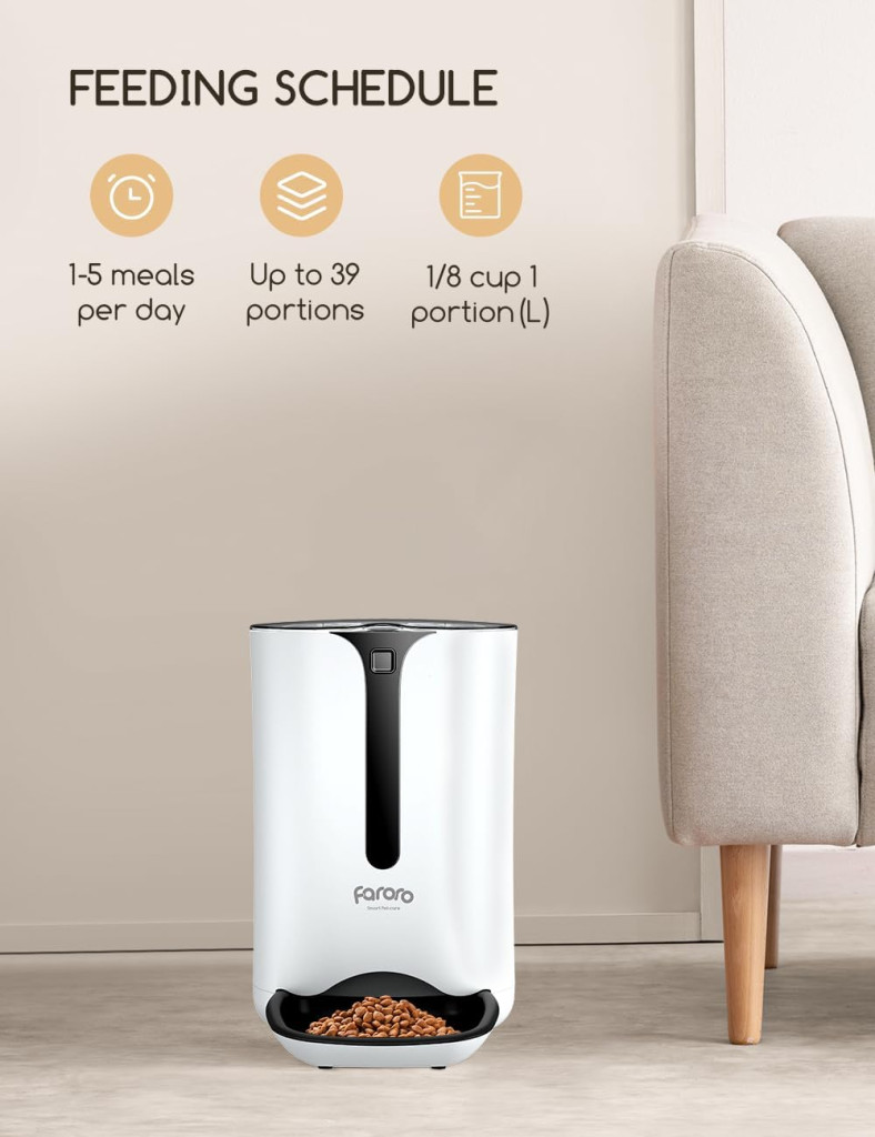 A Faroro 7L automata macska etető egy innovatív és megbízható megoldás, amely biztosítja kedvence rendszeres és pontos etetését, miközben Önnek nyugalmat és rugalmasságot nyújt. Legyen szó akár macskáról, akár kisebb kutyáról, ez az etető gondoskodik arról, hogy háziállata mindig időben és megfelelő mennyiségben kapja meg az ételét, még az Ön távollétében is.