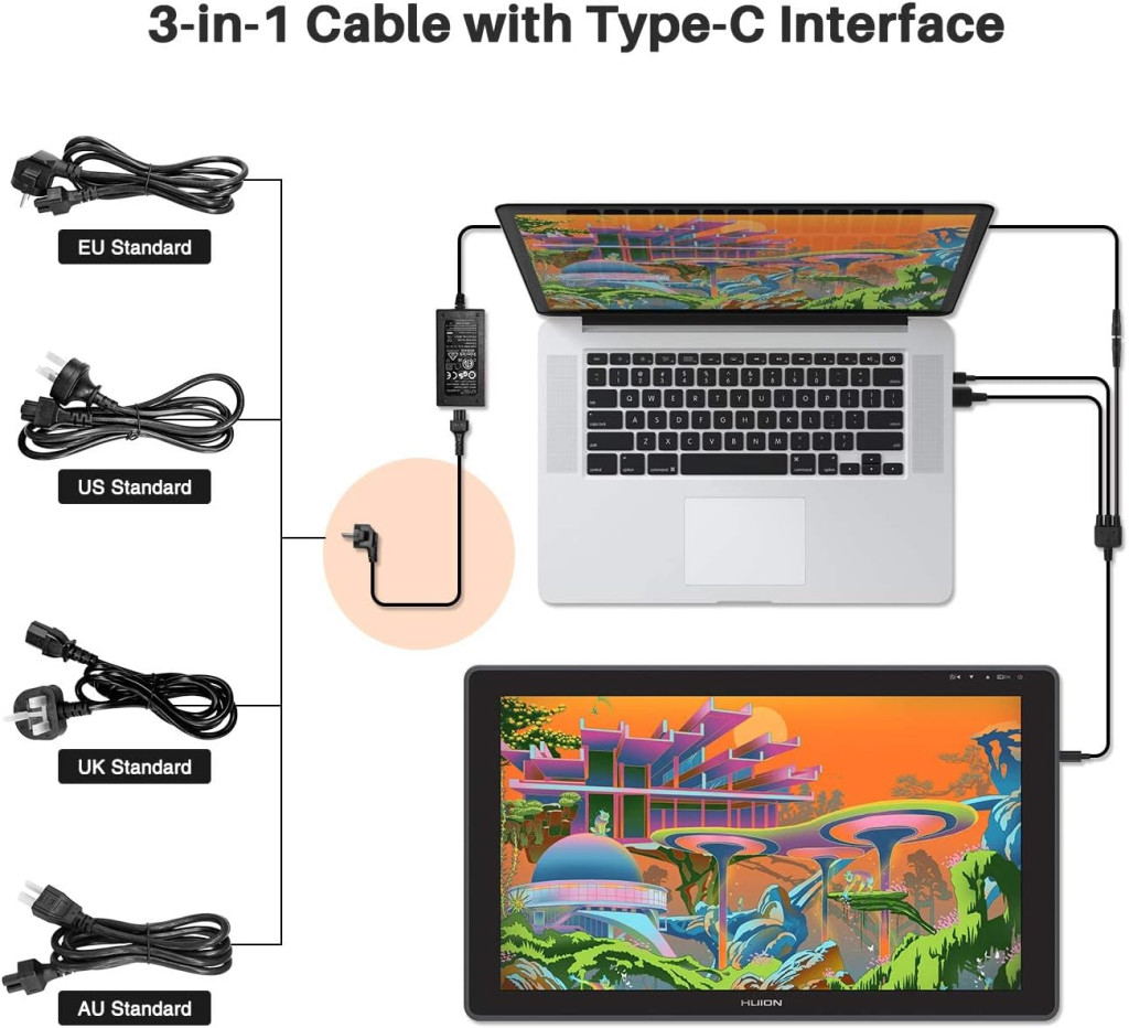 A HUION CB06 3-az-1-ben kábel a KAMVAS 22 és 22 Plus táblagépekhez: