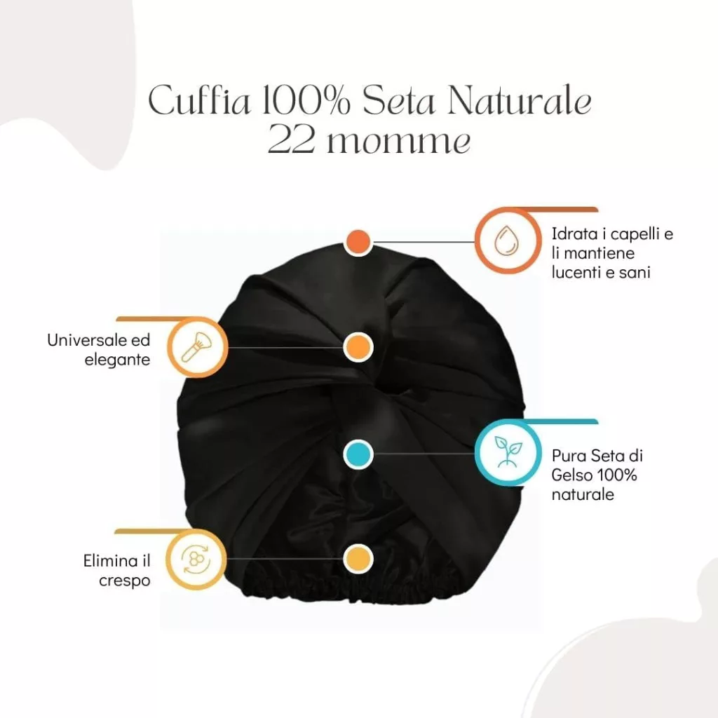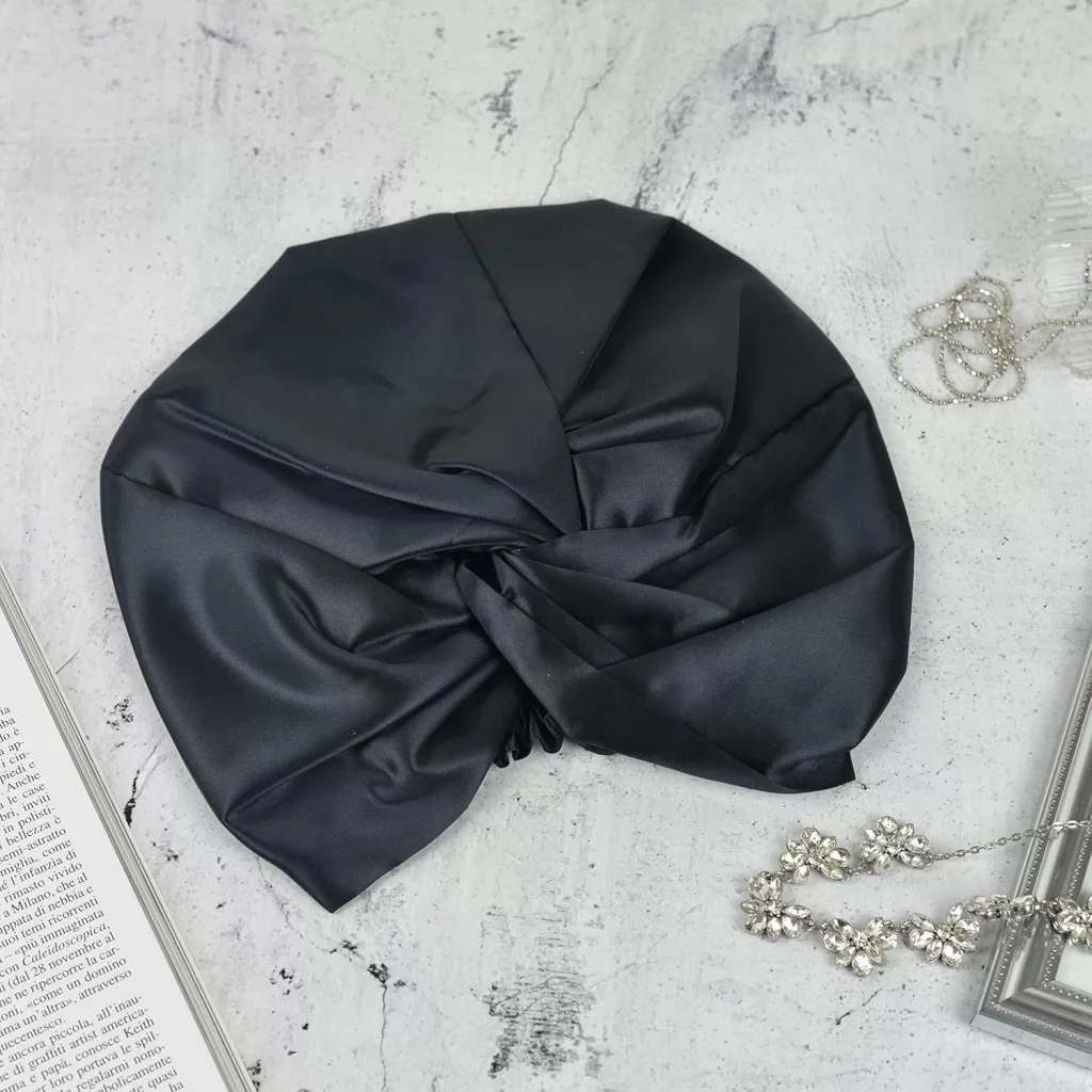 OFFTOPIC 22 Momme 100% Természetes Selyem Alvósapka Göndör, Egyenes és Hosszú Hajra - Elegáns Fekete Hajvédő Sapka Éjszakai Használatra