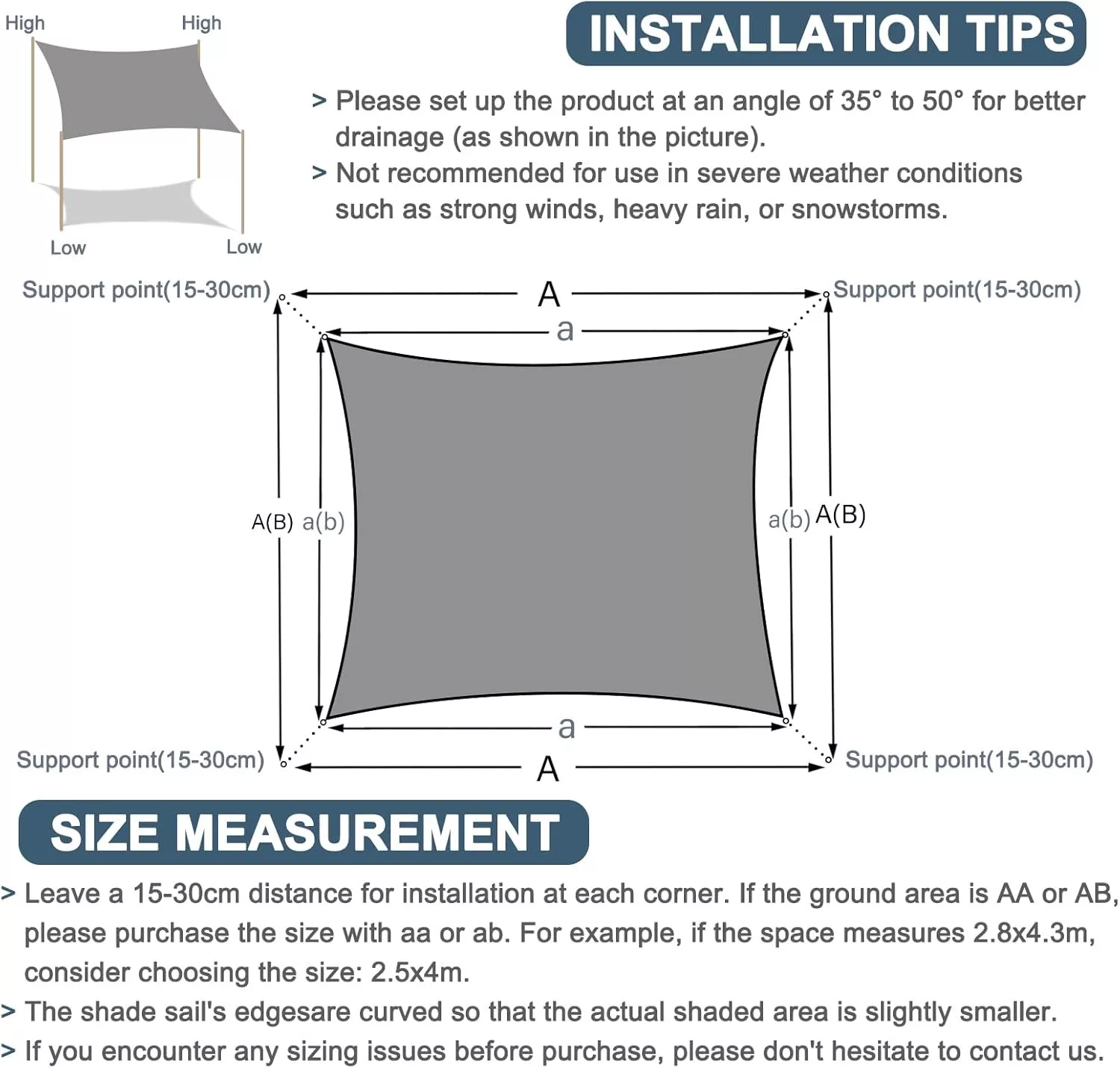 Uz proizvod dolazi detaljan priručnik za ugradnju, koji vas korak po korak vodi kroz instalaciju. Za optimalnu drenažu preporuča se postavljanje tende za sunce pod kutom od 35-50°. To ne samo da osigurava učinkovitu drenažu vode, već i povećava vijek trajanja proizvoda.