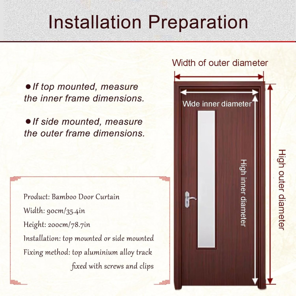 Postavljanje zavjese je iznimno jednostavno. Sve što trebate učiniti je pričvrstiti čavle ili vijke na odgovarajućoj visini na zidu ili okviru vrata, gdje želite objesiti zavjesu, a zatim pažljivo objesite drvenu zavjesu. Stabilna šina od nehrđajućeg čelika osigurava dug vijek trajanja i bezbrižno korištenje.