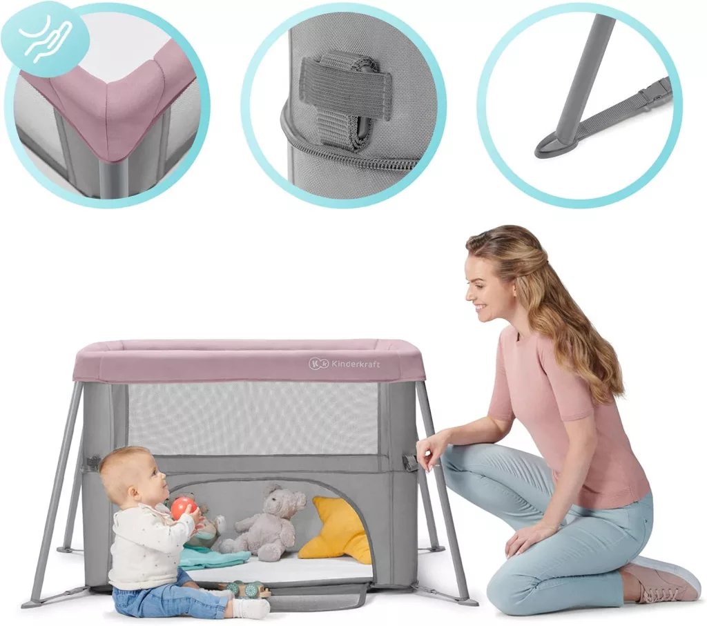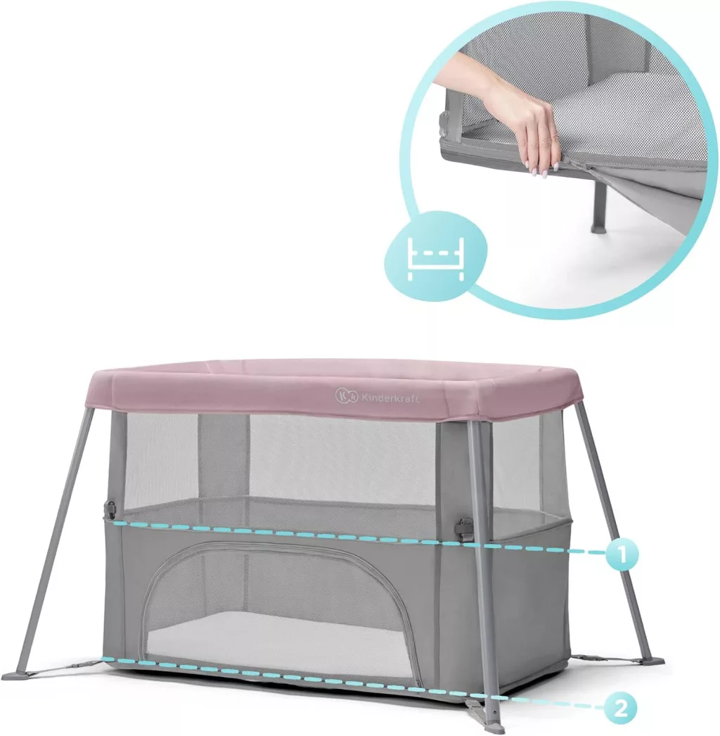Kinderkraft MOVI 2-in-1 Utazási Ágy és Játszóboks - Rózsaszín