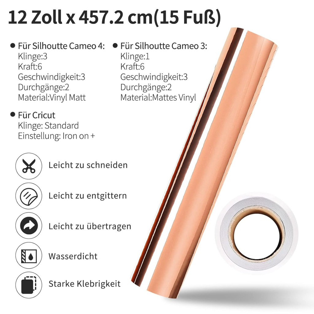 - Könnyű vágás és eltávolítás: Az öntapadós vinilfólia állandó tapadóerővel rendelkezik, amely kompatibilis bármely vágógéppel, például Cricut és Silhouette Cameo. Az erősebb hátoldali papír megakadályozza az esetleges vágásokat.