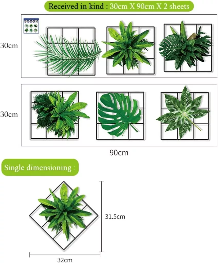 • ???? Kompletan set: 6 samostojećih naljepnica za zid s motivom biljaka, smještene na 2 lista veličine 30 cm x 90 cm