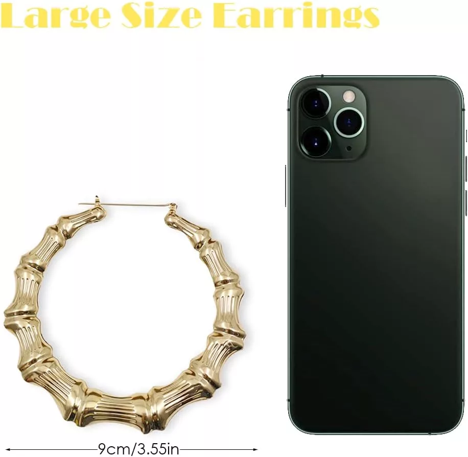 Naušnice od bambusovih karika savršena su kombinacija modernog stila i klasične elegancije. Ova kolekcija velikih, zlatnih naušnica dizajnirana je posebno za one koji vole smjeli, upečatljiv nakit. Unatoč veličini od 9 cm, teže samo 21 gram, što ih čini udobnima za nošenje cijeli dan bez uzrokovanja boli.