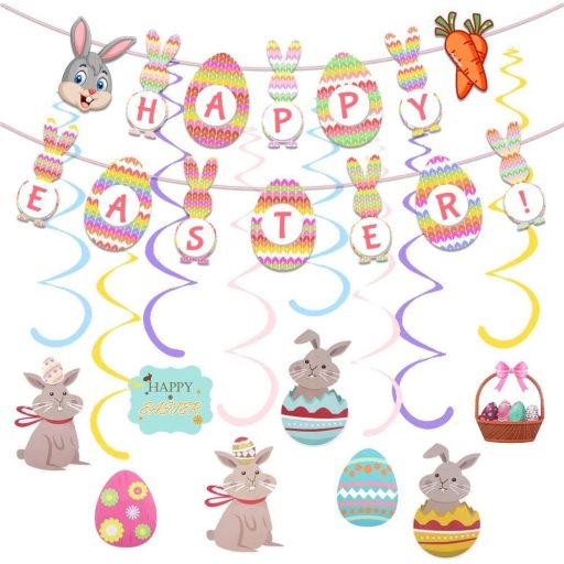 Folijske spirale izrađene su od visokokvalitetne metalne folije, dok su zastavice od ekološki prihvatljivog papira. Dvostrani izrezi prikazuju slatka i šarena jaja, zečiće, mrkve i druge uskrsne motive, što ih čini prekrasnim iz svakog kuta.