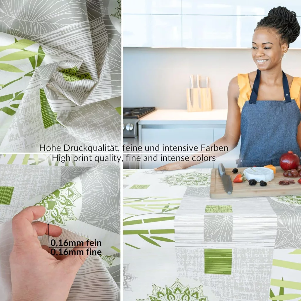 A terítő 100% PVC-mentes, oldószereket, halogéneket és ftalátokat nem tartalmaz, így biztonságos a család egészségére. Ideális az étkezőasztalhoz, teraszhoz, kerthez vagy akár piknikhez a parkban. A viaszos felület garantálja a könnyű tisztíthatóságot és a hosszú élettartamot.