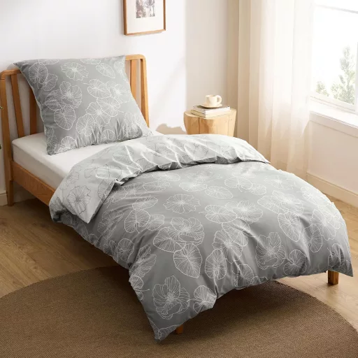 BEDSURE Pamut Ágyneműhuzat 135x200 cm Ginkgo Mintás Szürke 2 Részes Párnahuzattal