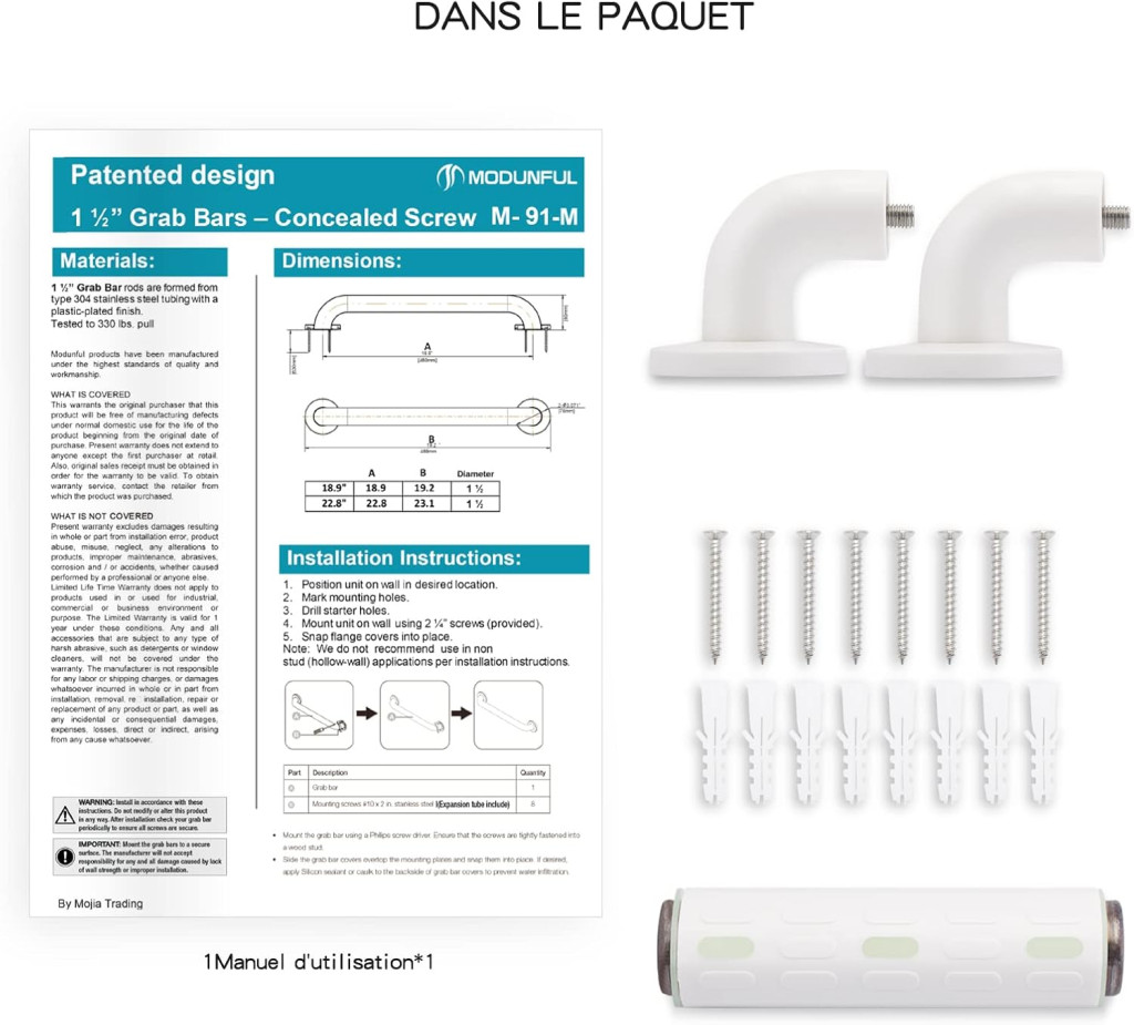 modunful Kupaonska Ručka-Stolica od Nehrđajućeg Čelika 30cm Protuklizna Ručka sa Svjetlećim Prstenom