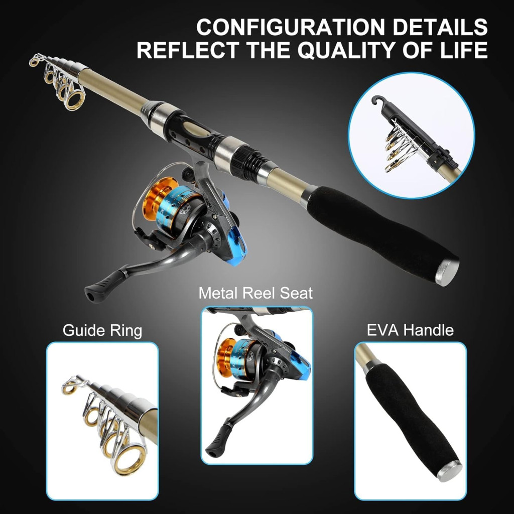icyant Teleszkópos Horgászbot és Orsó Szett Sós és Édesvíz Horgászathoz Tartozékokkal