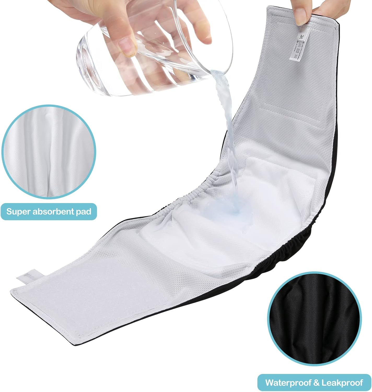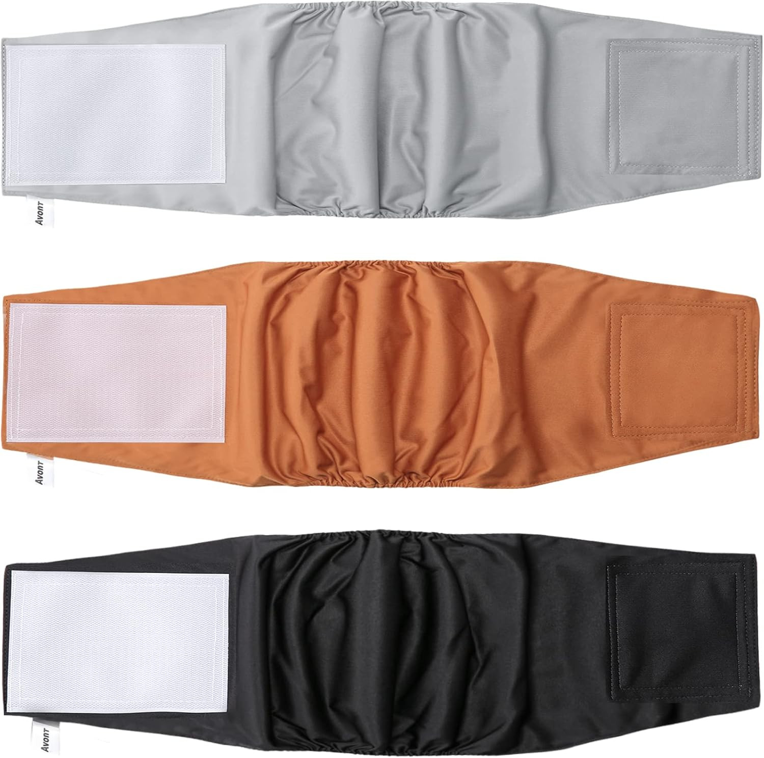 Avont 3 db Férfi Kutyapelenka Szett, Mosható Hasbanda Inkontinencia Elleni Kutyáknak, Fekete/Barna/Szürke