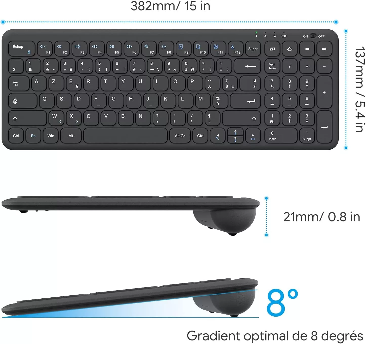 • AZERTY Billentyűzet elrendezés: Francia nyelvű billentyűzet, amely tökéletesen illeszkedik a francia és francia nyelvű felhasználók igényeihez