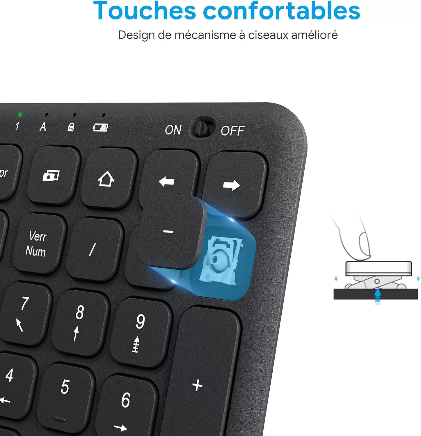 OMOTON Wireless 2.4GHz AZERTY Billentyűzet Numerikus Billentyűzettel PC Windows Számítógéphez Csendes Fekete