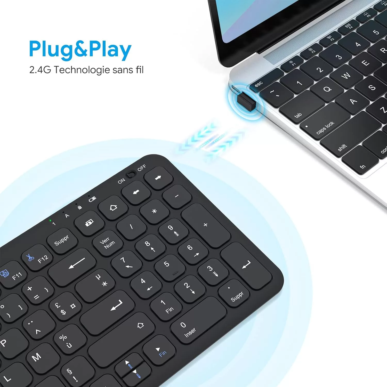 OMOTON Wireless Computer Keyboard AZERTY - 2.4GHz Billentyűzet Windows-hoz