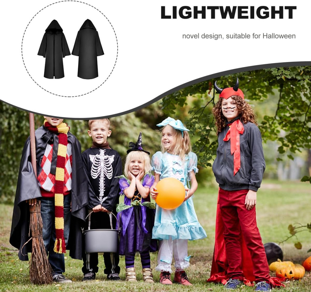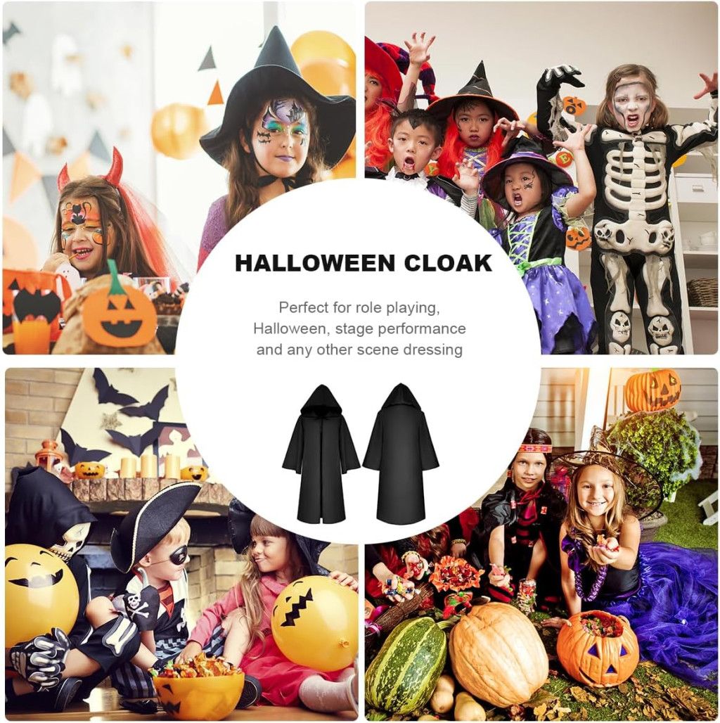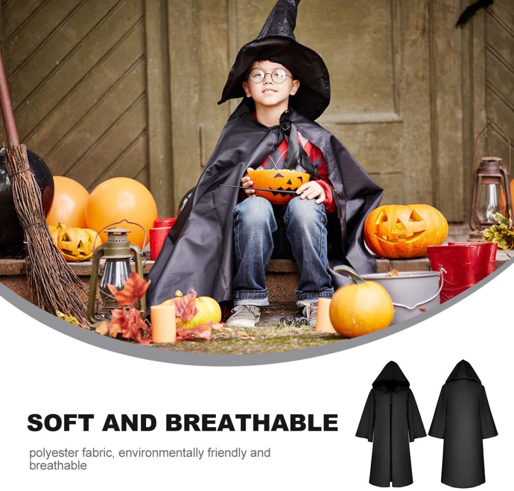 Ovaj zadivljujući crni plašt idealan je izbor za svako dijete koje želi biti pravi čarobnjak, mračni vitez ili horror lik. Proizvod je savršen za proslave Halloweena, karnevalske povorke, maskenbale i zabavne tulume. Mistična crna boja i elegantan kroj zajamčeno će privući pozornost i pojačati blagdansku atmosferu.
