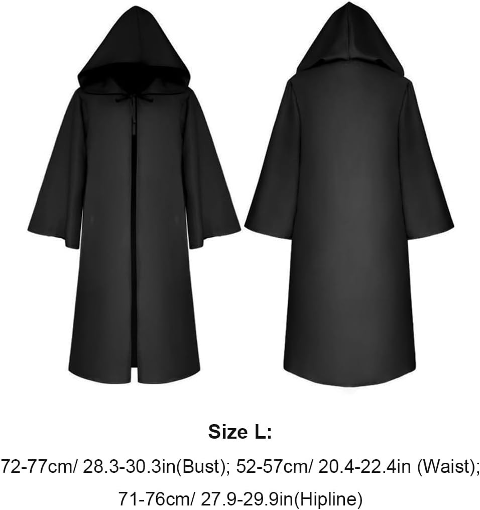 Veličina L idealna je za djecu u dobi od 8 do 14 godina koja su prosječne ili veće građe. Duljina plašta je 145 cm, što je dovoljno da ostavi dramatičan dojam, ali ne ometa kretanje. Podesive vrpce omogućuju savršeno pristajanje, bez obzira na točne djetetove mjere.