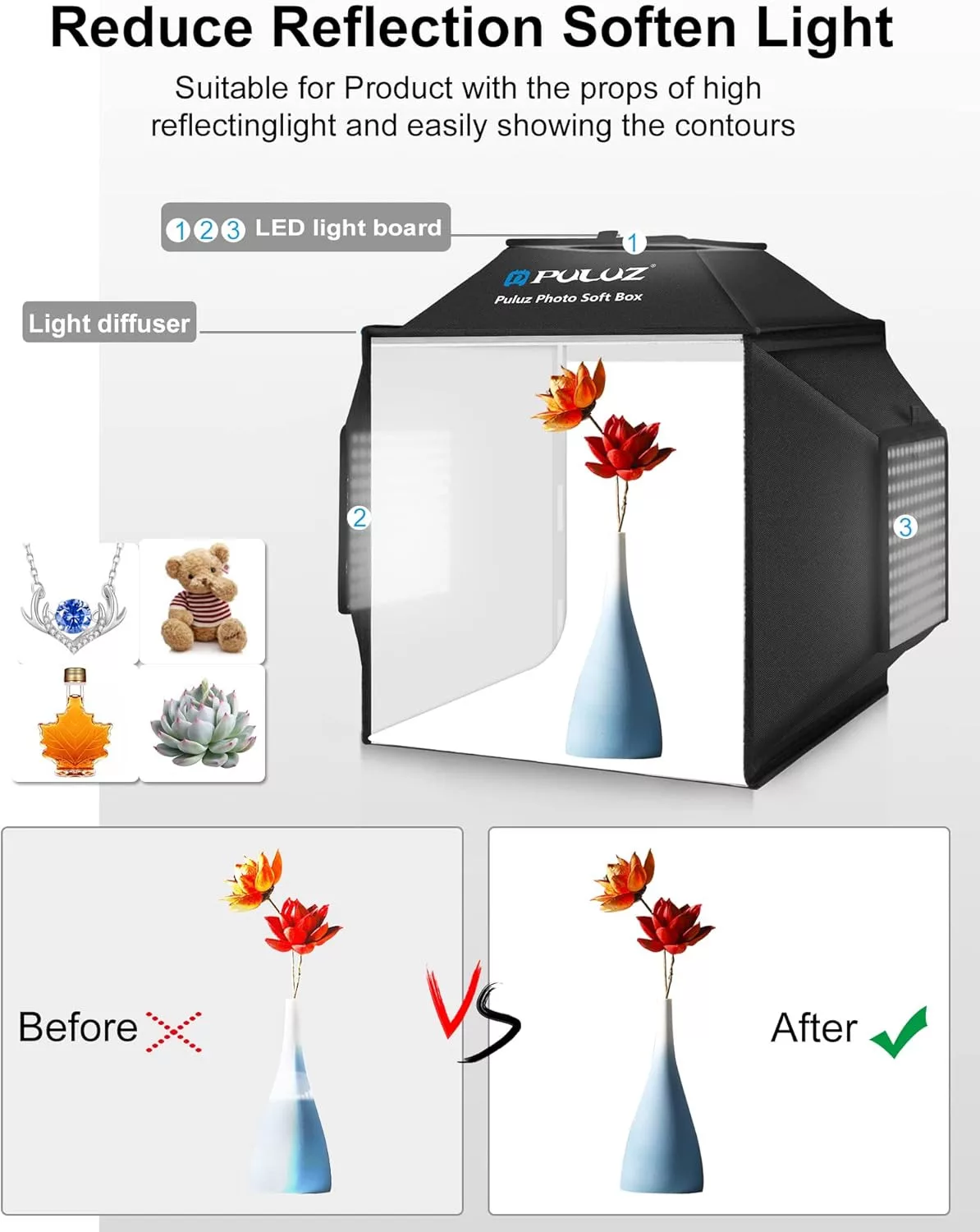 A PULUZ professzionális fotóstúdió szoftbox minden, amit a termékfotózáshoz szükséges: