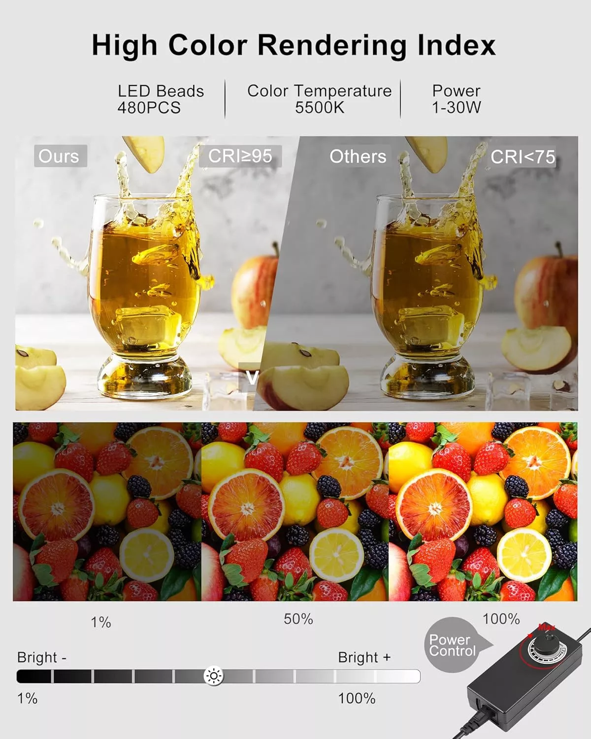 Könnyedén állíthatod a fényerőt 10 különböző szinten, flicker-mentes technológiával. Ez lehetővé teszi, hogy tökéletes megvilágítást érj el bármilyen körülmények között, legyen szó fényes vagy sötétebb termékekről.
