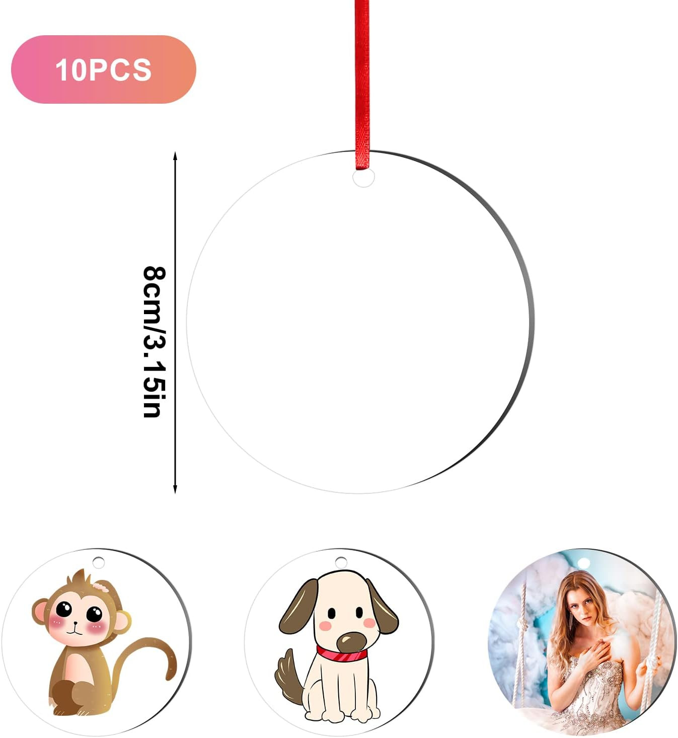 - Teljes csomag: 10 darab kerek szublimációs medál + 10 darab piros szalag