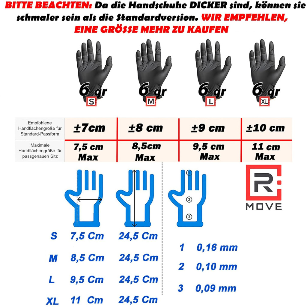 R MOVE 100 db fekete nitril eldobható kesztyű, extra vastag, pormentes, latexmentes M méret
