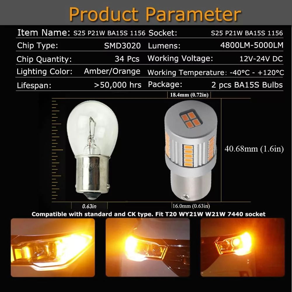 Az Eseastar BA15S LED irányjelző izzó 500%-kal fényesebb, mint a halogén: