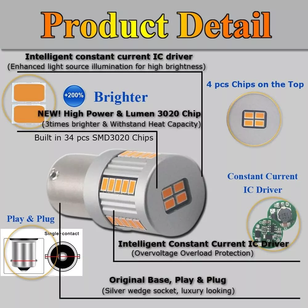 A 34 LED chip beépítésével és az intelligens Canbus vezérlővel ez a termék biztosítja, hogy az autó jelzőfénye mindig jól látható és hibamentes működésű. Az energiahatékonyság és a hosszú élettartam azt jelenti, hogy kevesebb költséggel és gondozással jár a használata.