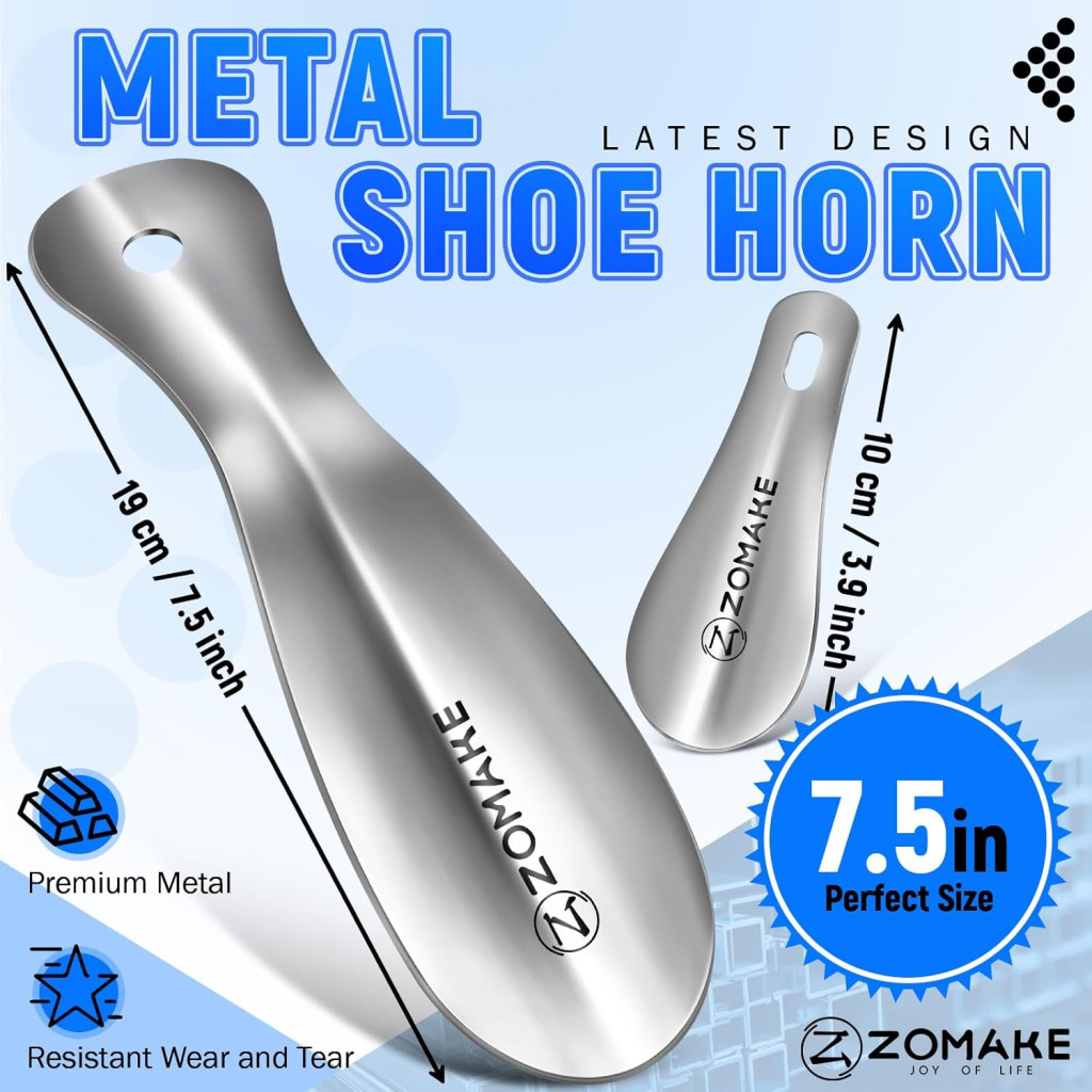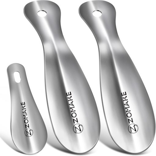 A ZOMAKE fém cipőkanál szett egy praktikus és elegáns megoldás mindennapi cipőviselethez. Ez a 3 darabos szett két különböző méretű cipőkanalat tartalmaz (19 cm és 10 cm), amelyek tökéletesen alkalmasak felnőtteknek, időseknek és gyerekeknek egyaránt. Az ergonomikus kialakítás és a rozsdamentes acél anyag biztosítja a hosszú élettartamot és a kényelmes használatot. A horgos akasztó lehetővé teszi a cipőkanalak könnyed tárolását és hozzáférhetőségét.