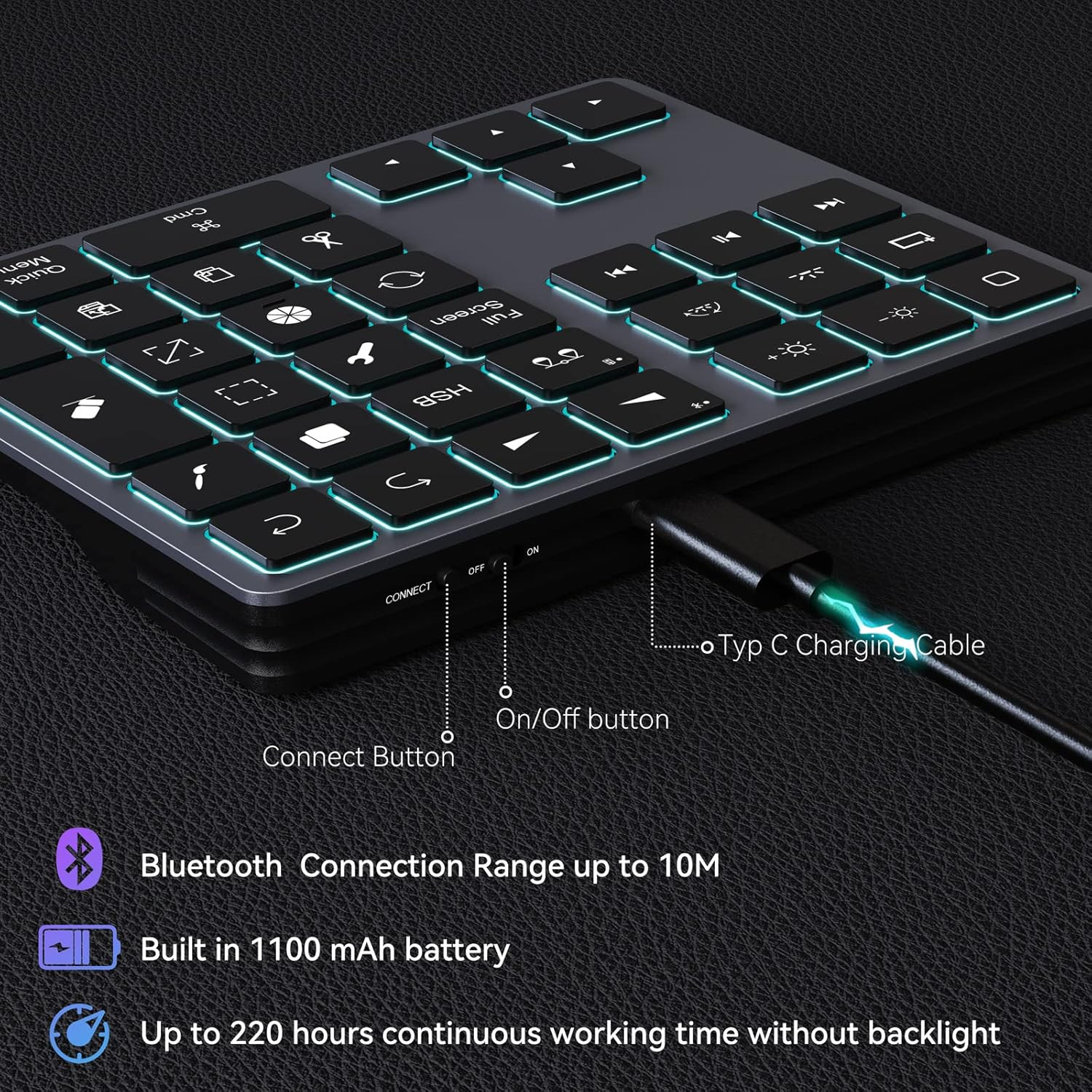 Doohoeek Bluetooth Háttérvilágított Billentyűzet iPad Procreate-hez