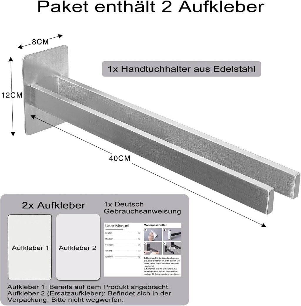 Ovaj držač ručnika nije samo praktičan, već može biti i elegantan dodatak svakoj kupaonici ili kuhinji. Crna boja daje moderan izgled, dok sustav s dvostrukom šipkom osigurava maksimalni kapacitet pohrane. Bilo da se radi o kupaonskim ručnicima, kuhinjskim krpama ili drugim namjenama, ovaj proizvod zadovoljava sve potrebe.