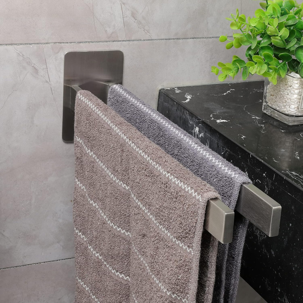Kupaonica: Držač ručnika osigurava idealno mjesto za kupaonske ručnike. Dvostruka šipka omogućuje vam da svježe i korištene ručnike držite odvojeno, osiguravajući higijensko i organizirano okruženje.
