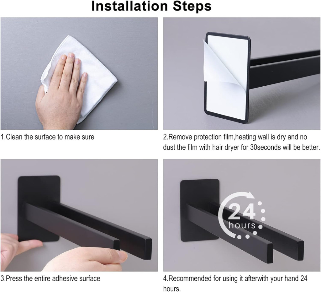 Qiannhee zidni držač ručnika lako se instalira i kompatibilan je s većinom zidnih površina. Slijedite ove korake za brzu i jednostavnu instalaciju: