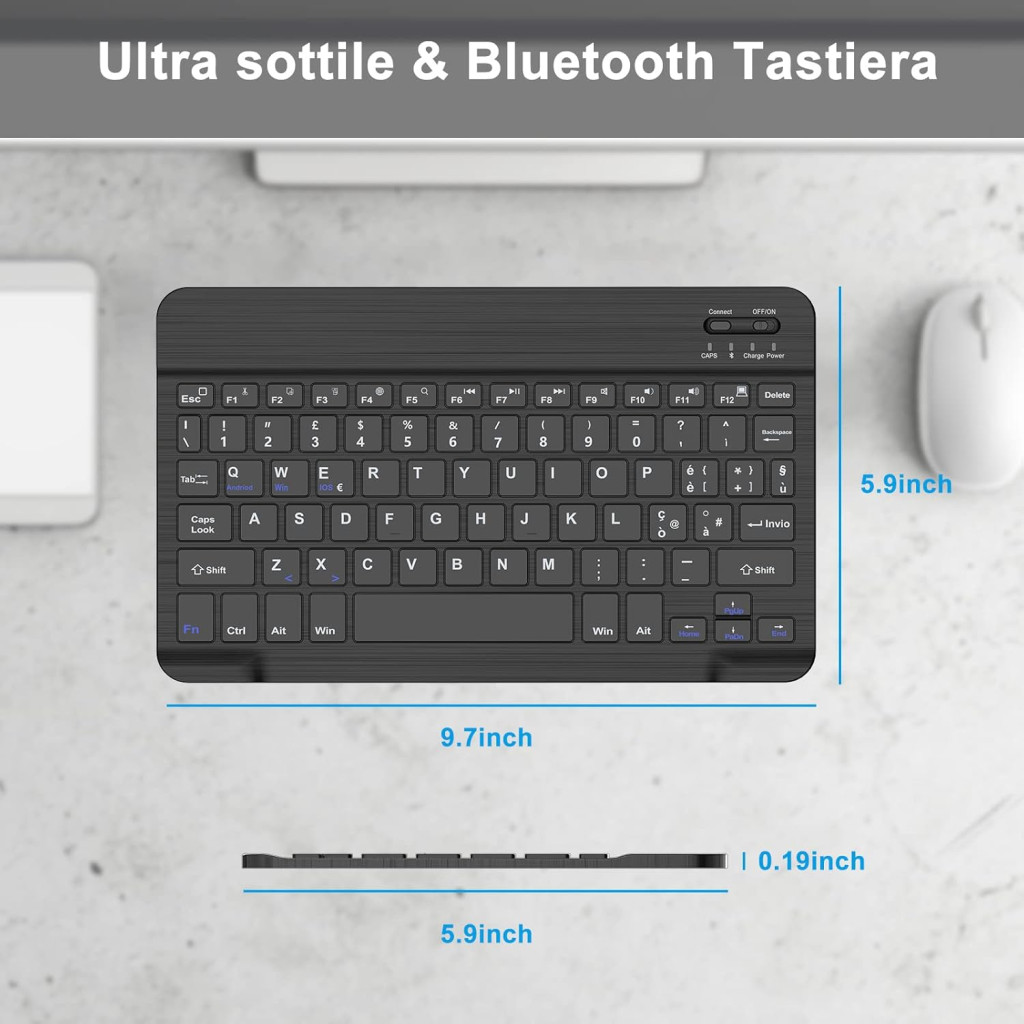 JADEMALL Bluetooth tipkovnica je svestrano, prijenosno rješenje za one koji žele tipkati na više uređaja. Opremljena talijanskim QWERTY rasporedom i modernom Bluetooth 3.0 tehnologijom, ova je tipkovnica savršen izbor za iPad, Samsung tablet, Lenovo, Huawei, Xiaomi i Windows uređaje. Lagan, kompaktan dizajn omogućuje vam da je ponesete bilo gdje sa sobom, dok dugi vijek trajanja baterije osigurava performanse potrebne za svakodnevnu upotrebu.