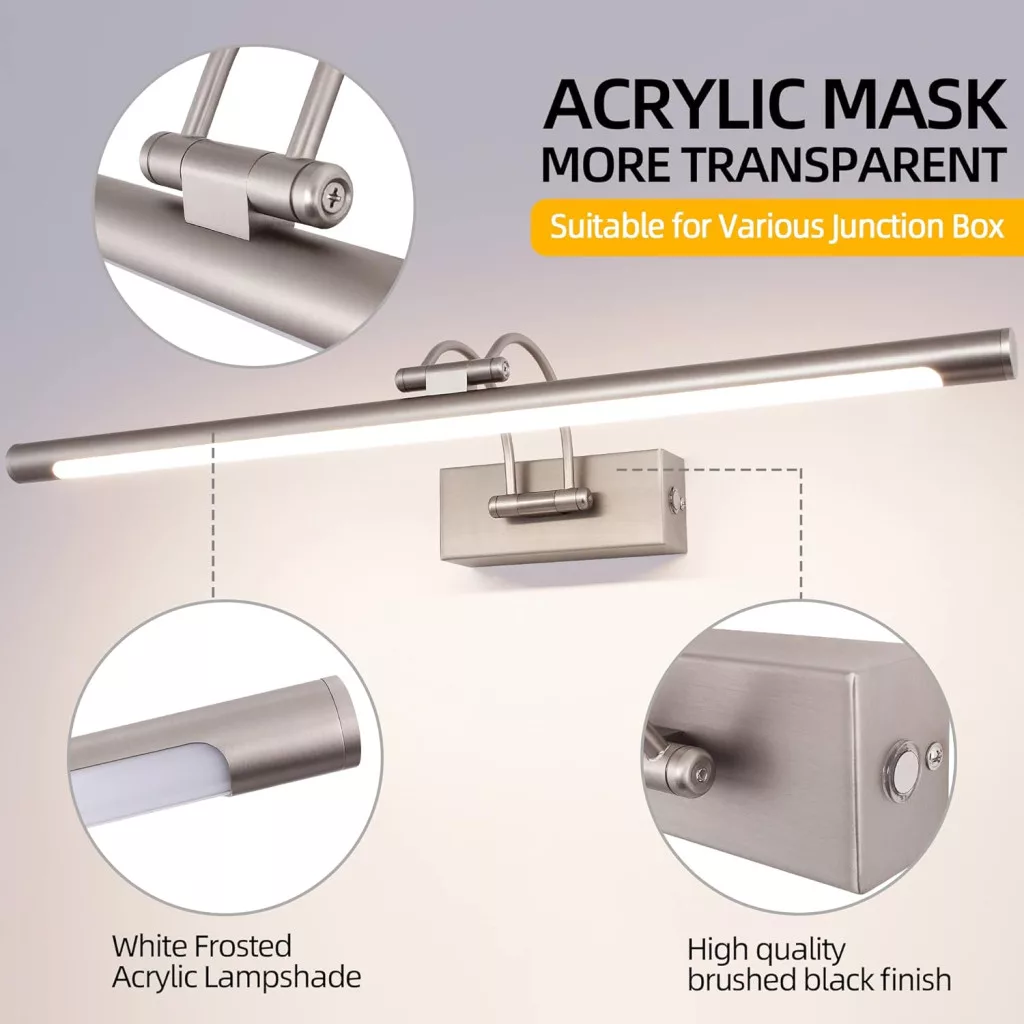 Ova moderna LED svjetiljka za ogledalo savršeno je rješenje za rasvjetu kupaonice. Zidna svjetiljka od 15W, razvijena od strane TYhogar, pruža profesionalnu rasvjetu, idealnu za osvjetljavanje ogledala, slika i ukrasnih elemenata. Nehrđajući čelik i akrilni materijali jamče dugi vijek trajanja i elegantan izgled.