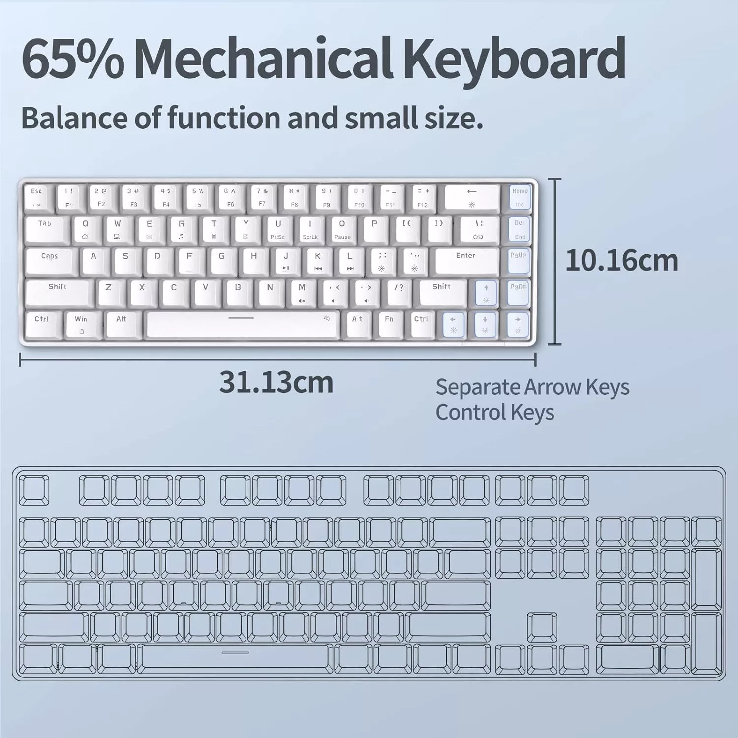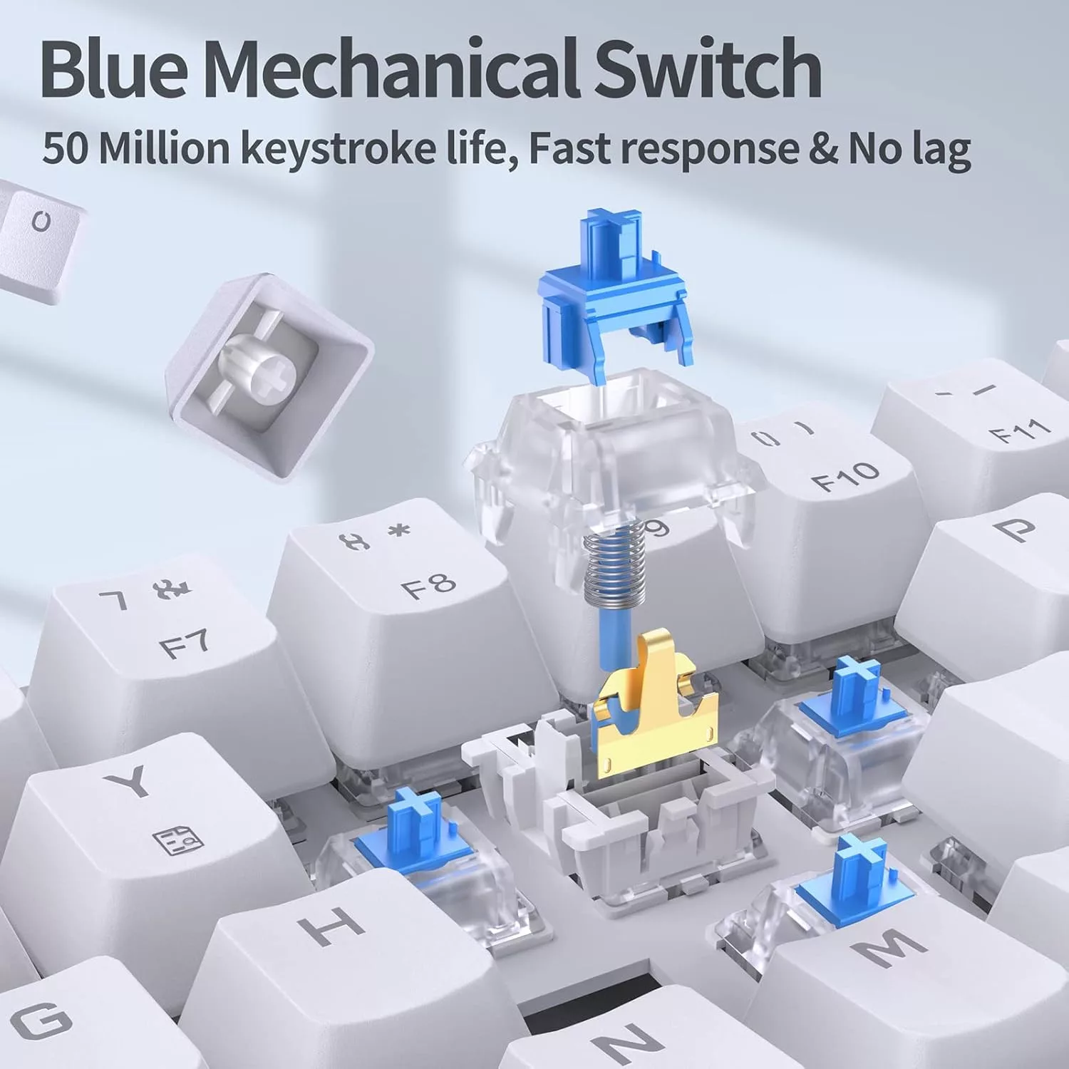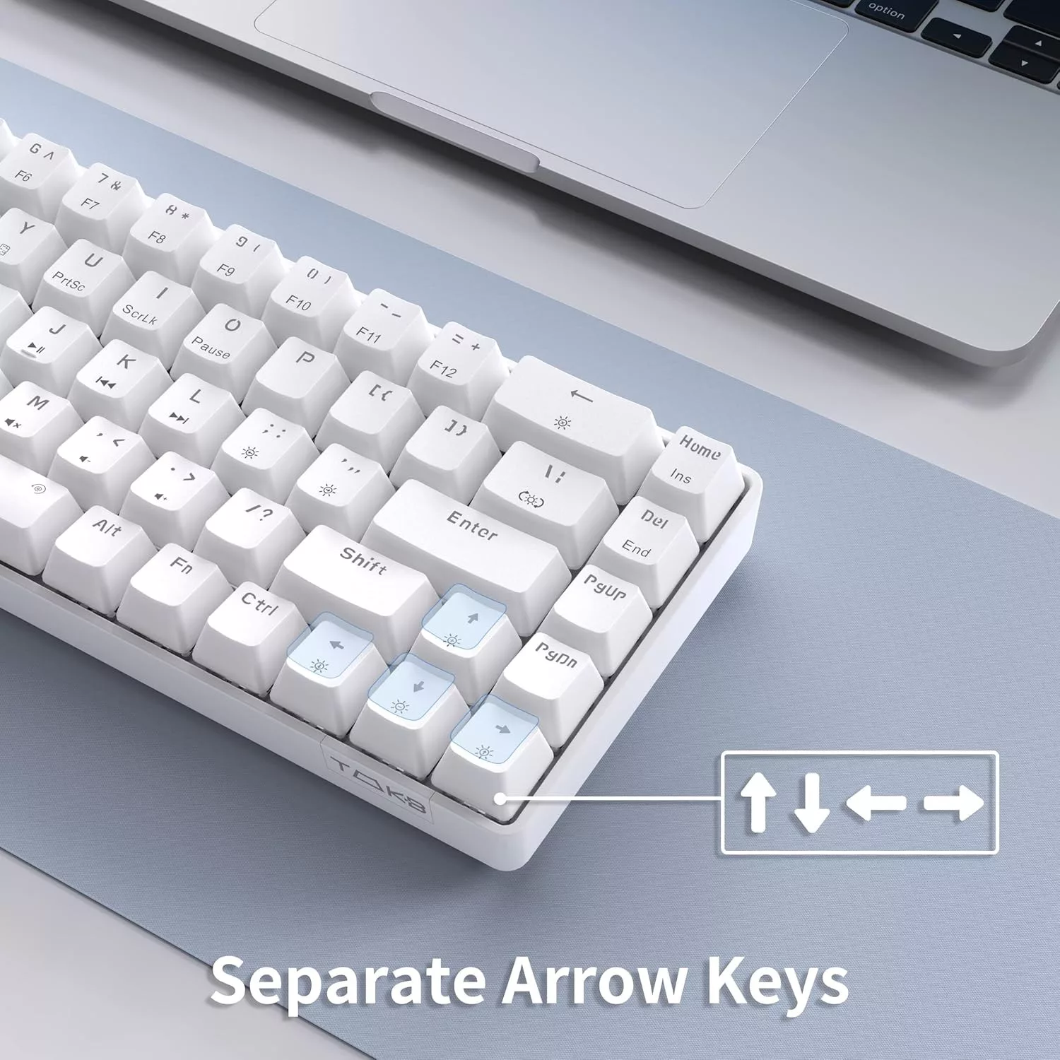 TMKB T68se 60% Mechanikus Gaming Billentyűzet USB Kábellel, Blue Switch, Fehér