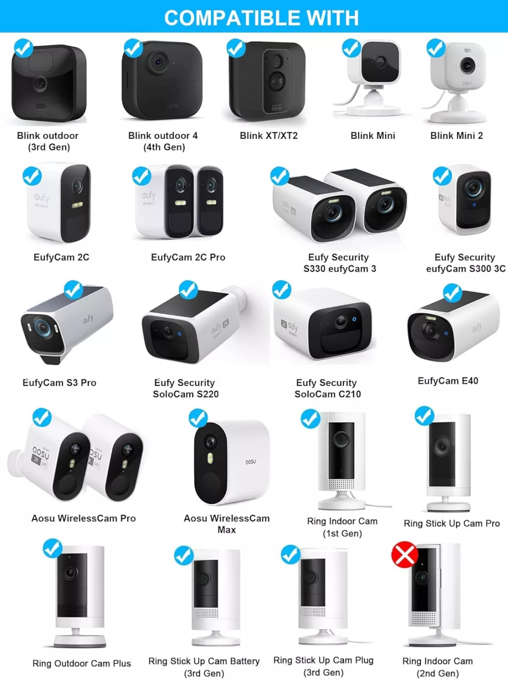 • Univerzális kompatibilitás: Tökéletesen illeszkedik minden Blink kamerához, beleértve az Outdoor, Indoor, Mini, Mini 2, XT és XT2 modelleket