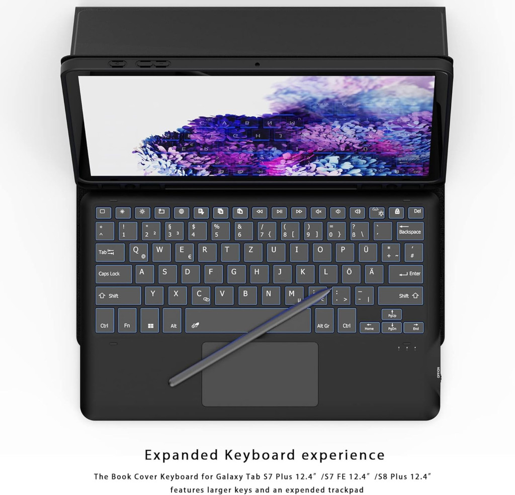 A ROOFEI Samsung Galaxy Tab S8 Plus/S7 FE/S7 Plus billentyűzet tok mindent kínál, amit egy produktív felhasználónak szüksége van: