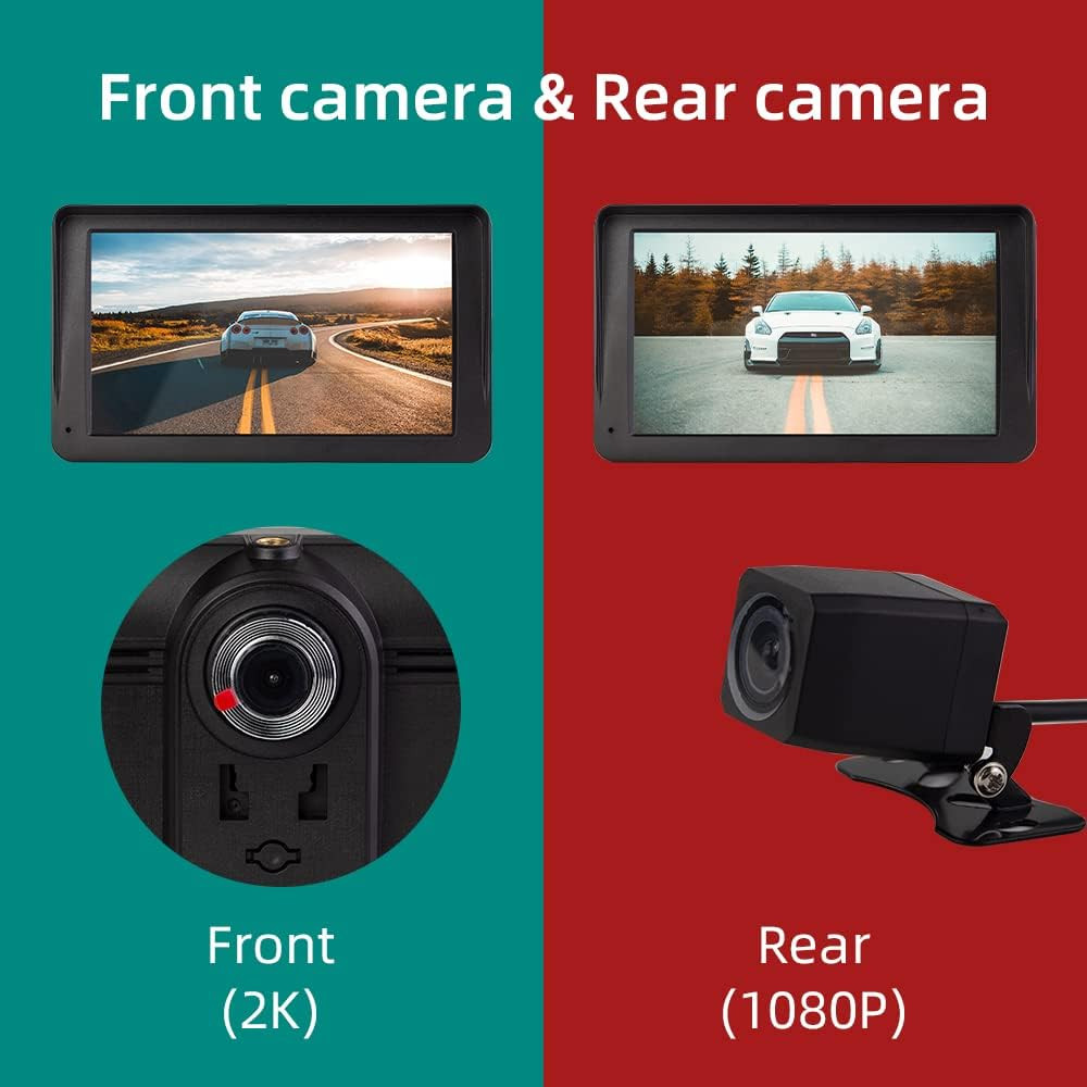 Proizvod dolazi s dvije ugrađene kamere: prednjom kamerom 2K rezolucije za bolji pregled tijekom vožnje, te stražnjom kamerom 1080P za vožnju unatrag. IPS zaslon osigurava izvrsnu vidljivost iz kuta gledanja, a rezolucija od 1024x600 piksela pruža kristalno čistu sliku čak i u sunčanim uvjetima.