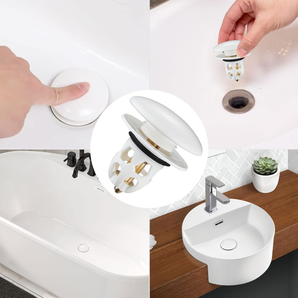 Tesyeux keramički čep za odvod nudi savršeno rješenje za svakodnevne kućanske probleme. Kombinacija elegantnog izgleda, praktičnog dizajna i trajne kvalitete materijala jamči dugoročno zadovoljstvo. Ugrađena košarica filtra sprječava začepljenje, dok aktiviranje pritiskom na gumb osigurava jednostavnu uporabu. Naručite ovaj paket od 2 komada sada i uživajte u besprijekornom, elegantnom rješenju u svom domu!