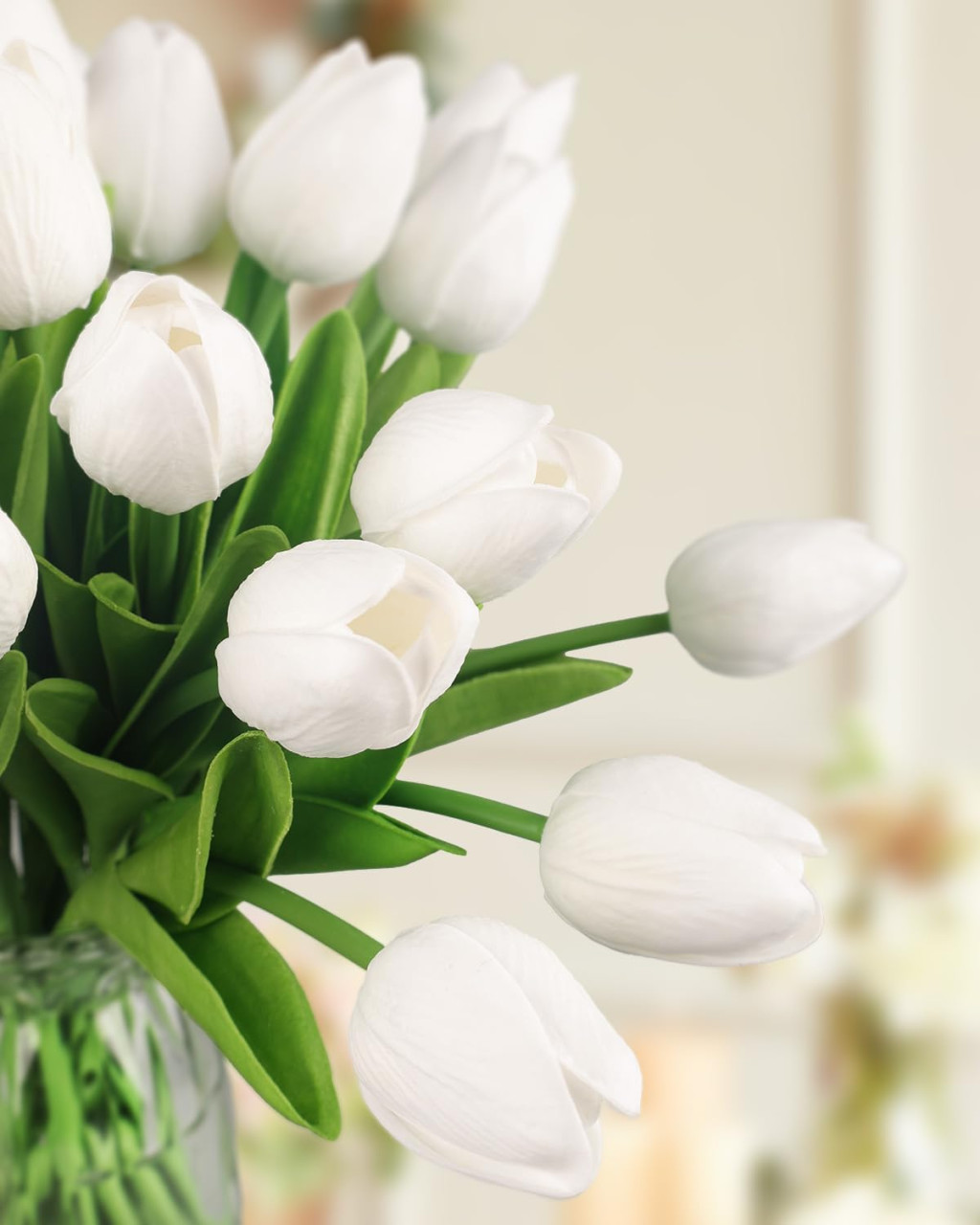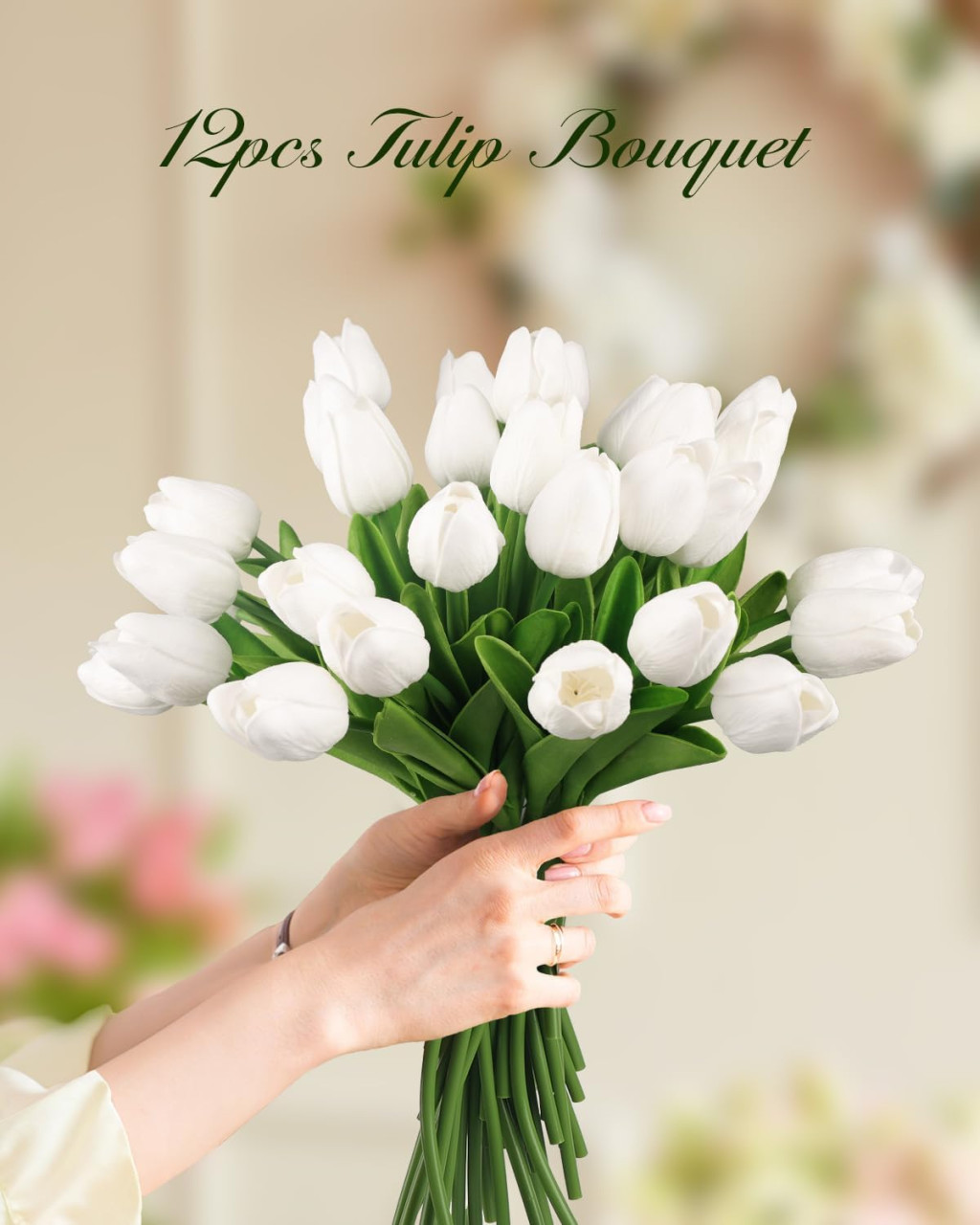 Dekoracija doma: Stavite ove prekrasne umjetne tulipane u elegantnu vazu u dnevnoj sobi, kuhinji ili spavaćoj sobi i odmah poboljšajte atmosferu prostorije. Bijela boja savršeno se uklapa u bilo koju shemu boja i daje vašem domu bezvremensku eleganciju. Posebno učinkovito može biti u minimalističkom ili skandinavskom stilu interijera.