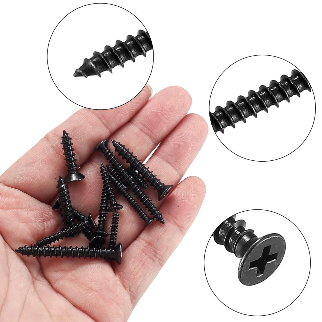 JinZeYou 420 darabos önmetsző csavar szett M3/M4/M5 fekete lapos fejű faforgácslemez bútor