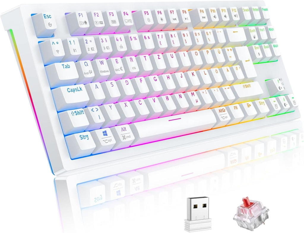 TECURS Wireless Mechanikus Gamer Billentyűzet 80% TKL QWERTZ Piros Switch RGB