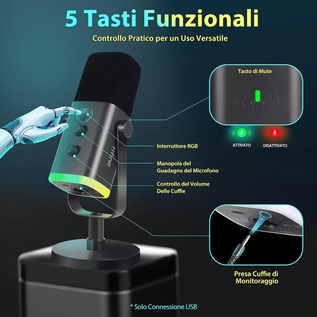 A kardioid polár minta és a 58 dB jel-zaj viszony garantálja, hogy a hallgatóid tiszta, professzionális hangot hallanak. Az RGB világítás pedig vizuális vonzerőt ad az élő streamekhez és videó produkciókhoz.