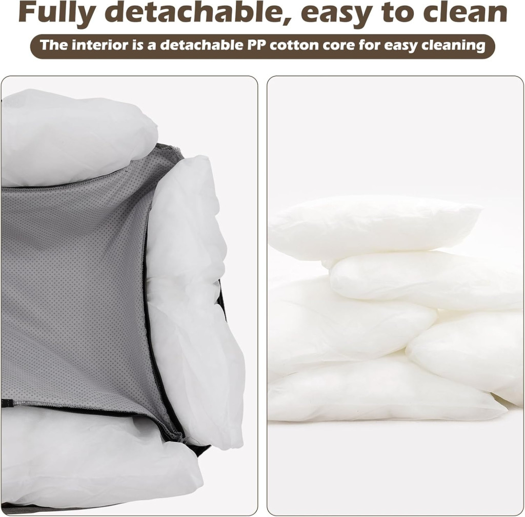 A Forroby kutyaülés teljesen szétszerelhető és mosható, ami rendkívüli kényelmet biztosít a tulajdonosoknak. A csúszó cipzárral felszerelt PP pamut betét független, így könnyedén eltávolítható és megtisztítható. Az egész ülés gépben mosható, azonban ajánlott egy hálós mosózsákban, kézzel mosni, hogy elkerüljük a karcolódást és az összefonódást. Ez biztosítja, hogy kedvencének mindig tiszta és friss környezete legyen.