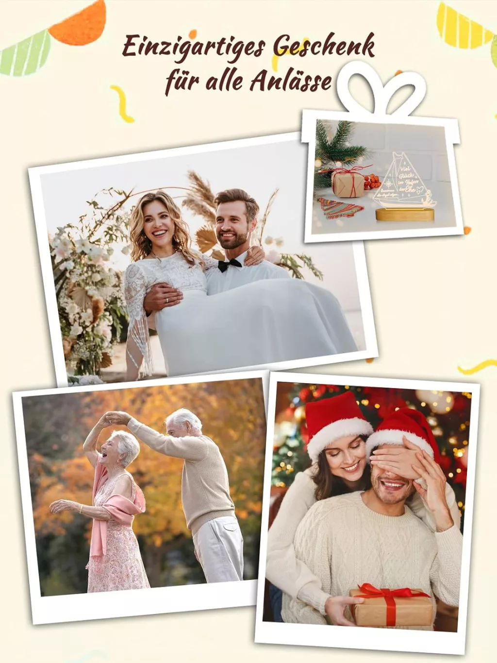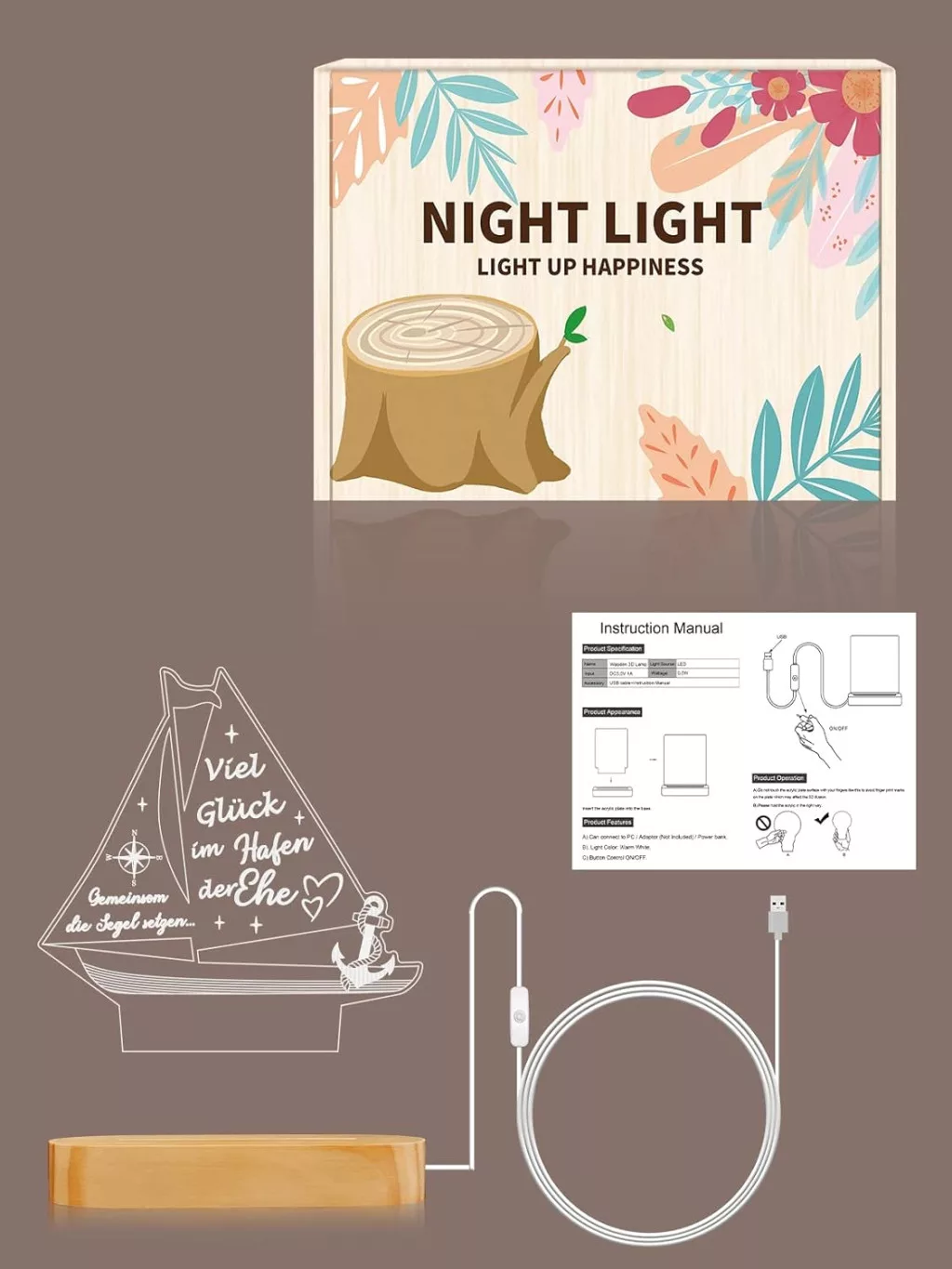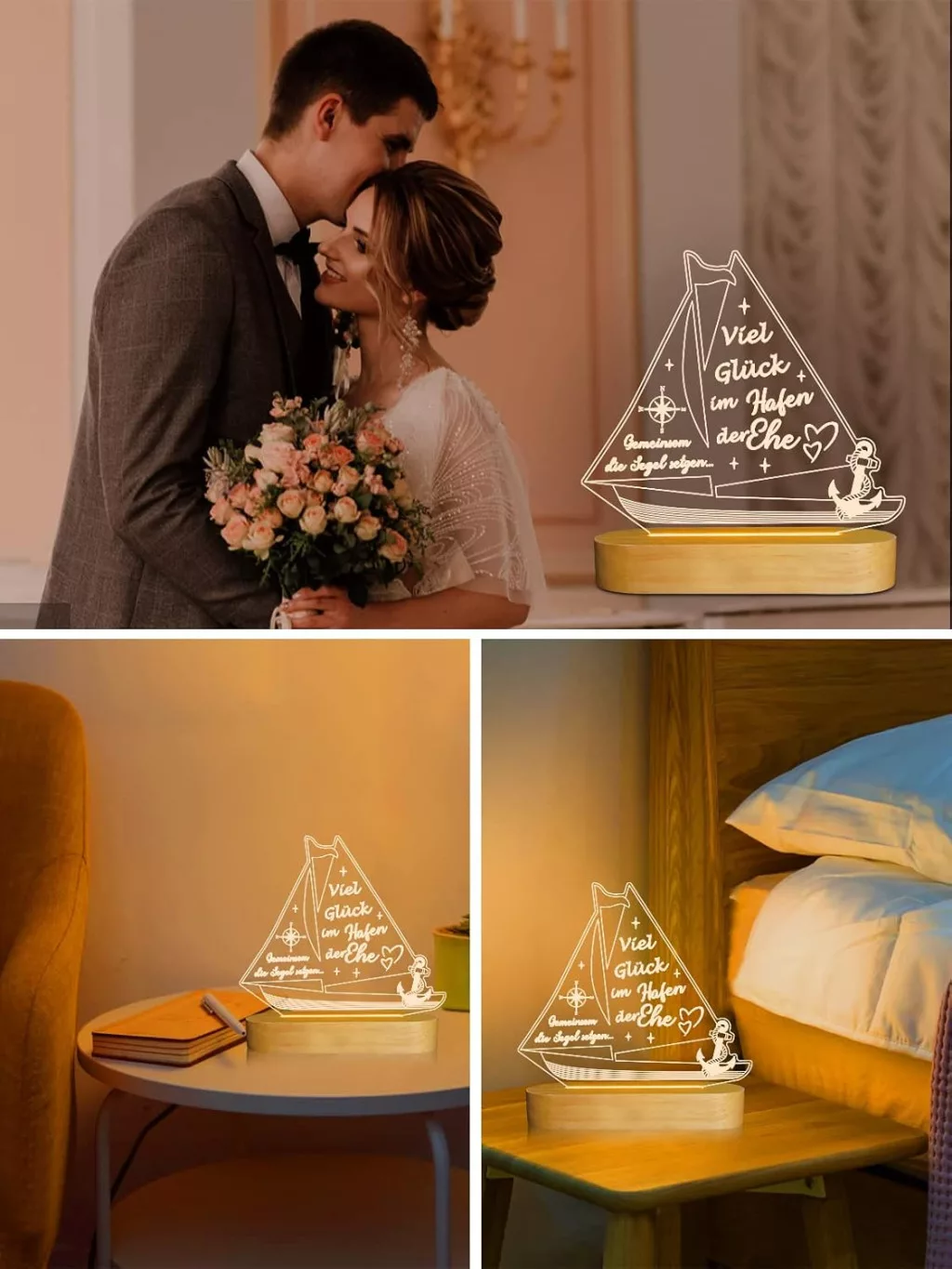 Ova prekrasna noćna lampa savršen je izbor za sve mladence koji žele stvoriti romantičnu atmosferu u svom domu. Kombinacija toplog bijelog LED svjetla i elegantnog drvenog postolja stvara jedinstvenu atmosferu koja svaki trenutak čini posebnim. Lampa ne samo da pruža praktičnu rasvjetu, već funkcionira i kao pravo umjetničko djelo koje će privući pažnju u svakoj prostoriji.