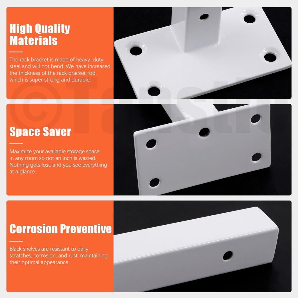 A Tanstic polctartó konzolok a modern otthon és munkahely ideális megoldása. Ez a 4 darabos szett fehér, ipari stílusú acél konzolokból áll, amelyek 8 hüvelykes (20 cm) szélességű polcokhoz tökéletesen illeszkednek. Minden konzol akár 75 kg terhelést is kibír, így biztosan megtartja kedvenc könyveit, dekorációit vagy egyéb tárgyait. A csomag tartalmaz minden szükséges szerelési alkatrészt, így gyorsan és egyszerűen felszerelheti őket.