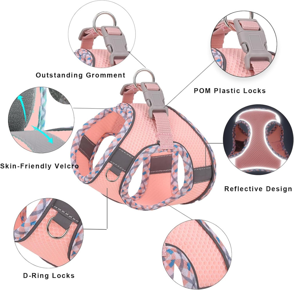 Zoenif Uprtač za Pse Srednje Veličine, Bez Povlačenja, Prozračan, Ružičasti s Reflektirajućim Prugama, XL