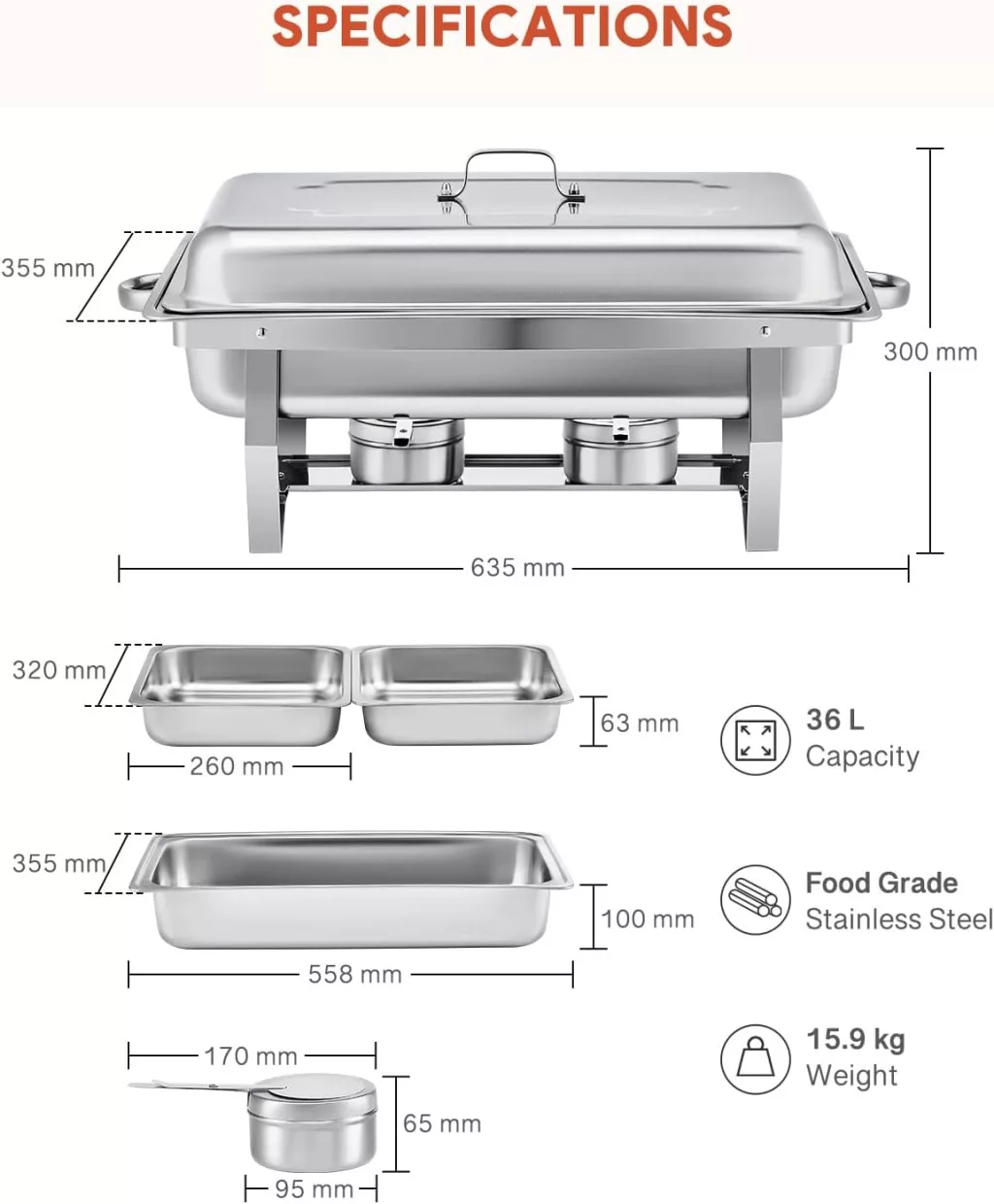 A Wilprep rozsdamentes acél melegentartó tálca készlet a professzionális catering és házi rendezvények tökéletes megoldása. Ez a 4 darabos készlet mindegyike 9 liter kapacitással rendelkezik, így akár nagyobb társaságok számára is elegendő ételt tud melegen tartani. A kiváló minőségű 410-es rozsdamentes acél anyag garantálja a tartósságot és a higiéniát, míg az elegáns design bármilyen rendezvényen jól mutat.